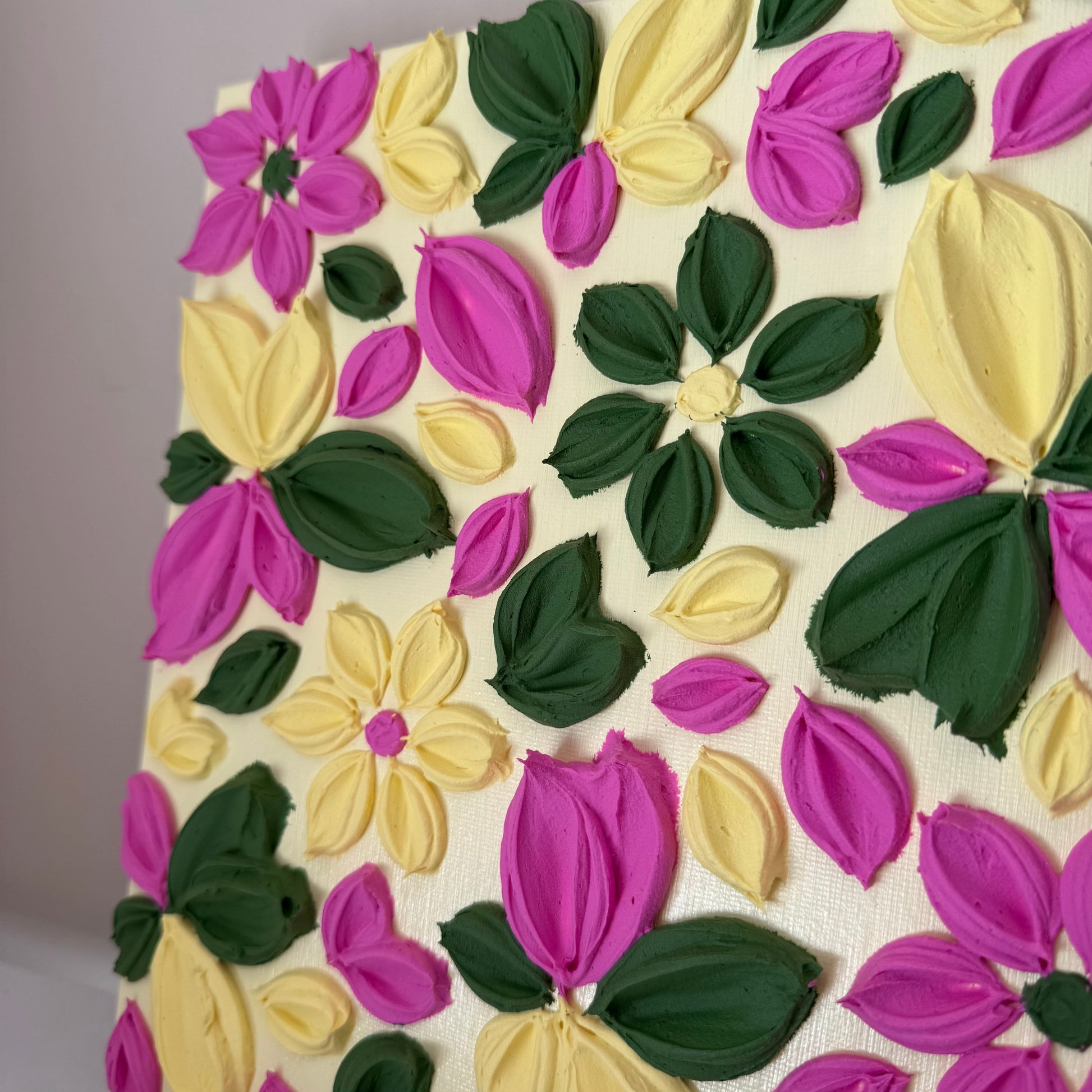 Bright, punchy and fun - So Sweet is exactly that! Set on a buttery yellow background with matching florals, as well as bold magenta and forest green, this piece brings serious colour pop to any space.